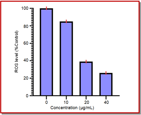 Figure 1: Effect of L. cylindrica extract on intracellular ROS levels on MCF-7 cells. The graph represents the mean ROS levels as a percentage of the control, where ROS levels in untreated cells were set to 100%. Data are mean ± SD; n=3