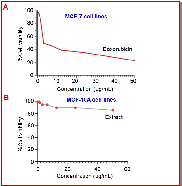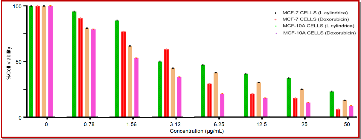 Figure 3: Dose-dependent cytotoxicity of L. cylindrica in MCF-7 and MCF-10A cell lines