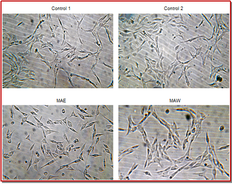Figure 5: Effects of Mahonia aquifolium water (MAW) and ethanol (MAE) extracts on angiogenesis of endothelial cells. Applied concentrations of MAW and MAE were 80 µg/mL. Representative photomicrographs of one out of two independent experiments are shown