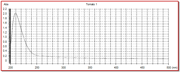Figure 2: Peak observed at 210 nm for the sample (aqueous extract of Solanum lycopersicum)