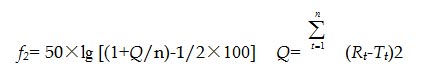 Where, n is the number of time points, Rt and Tt are the percentages of the reference and testing drug release at each time point t, respectively